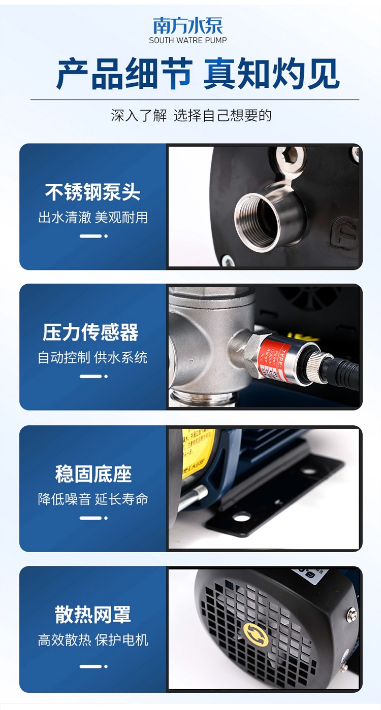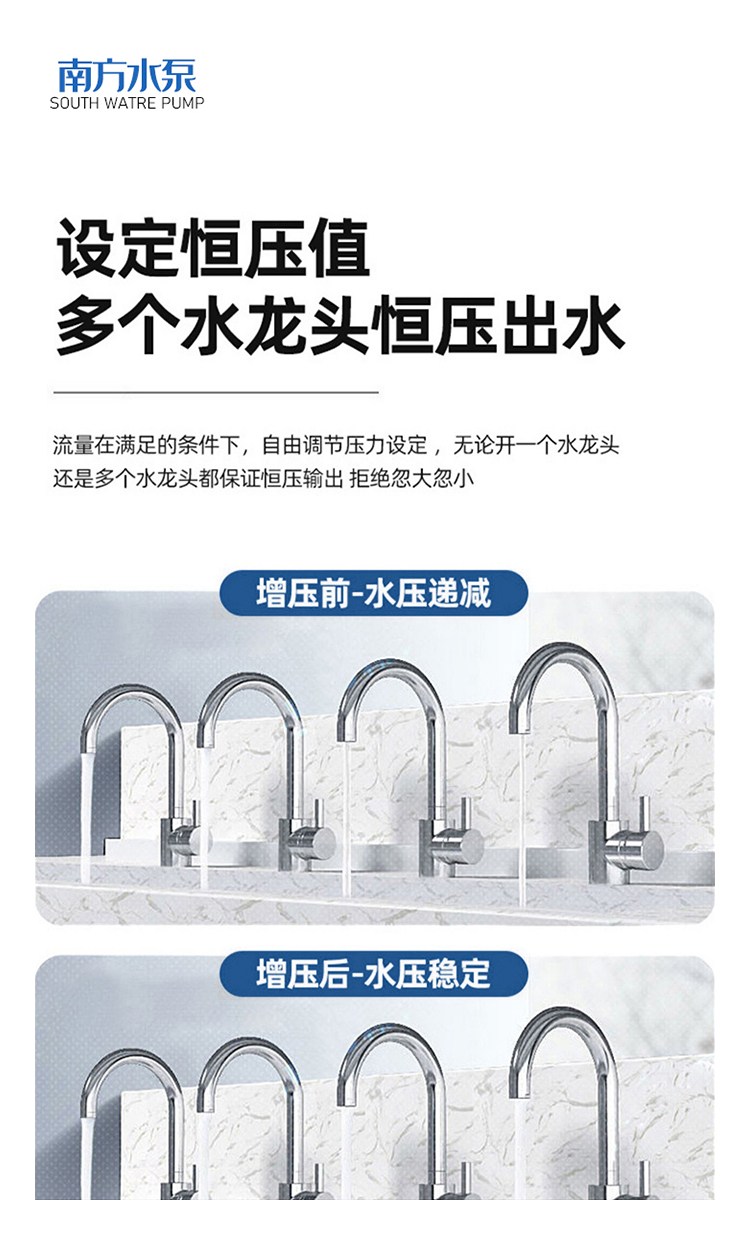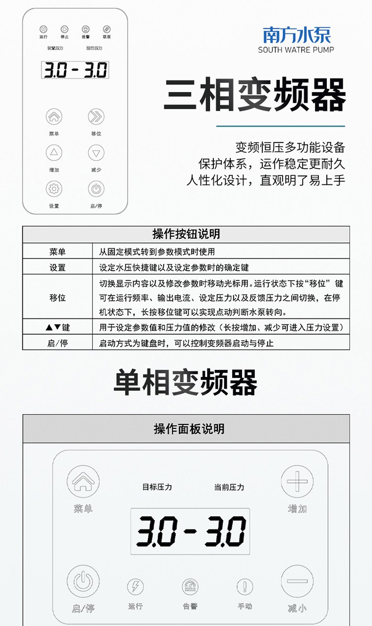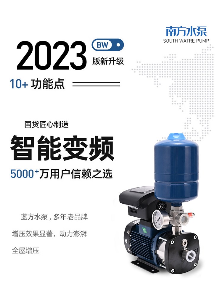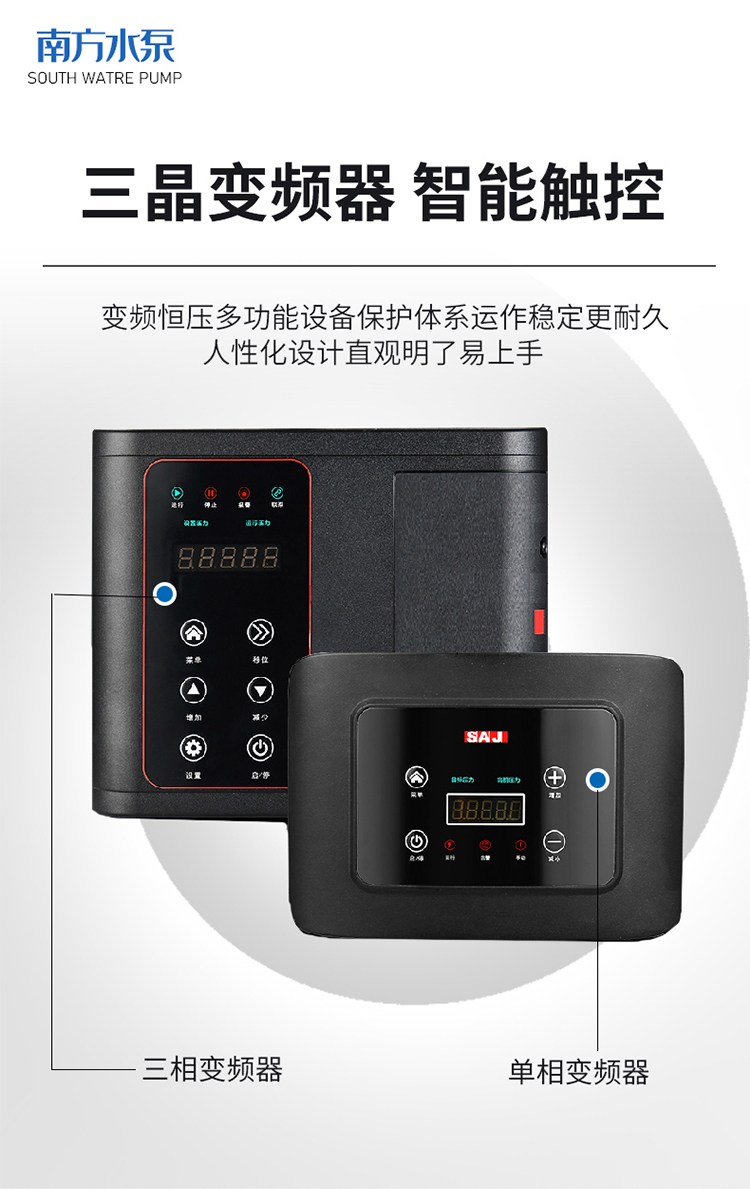 南方CHME系列臥式智能恒壓變頻泵采用了變頻調(diào)速及自動化控制相結(jié)合的技術,配合高效節(jié)能的CHM非自吸輕型臥式多級離心泵。整機主要由CHM泵、控制器、傳感器、壓力罐、五通止回閥及軸向抗震壓力表等組成。具有性能穩(wěn)定、高效節(jié)能、全自動智能控制、低噪音、耐腐蝕、結(jié)構(gòu)緊湊、外形美觀、體積小、重量輕等特點。